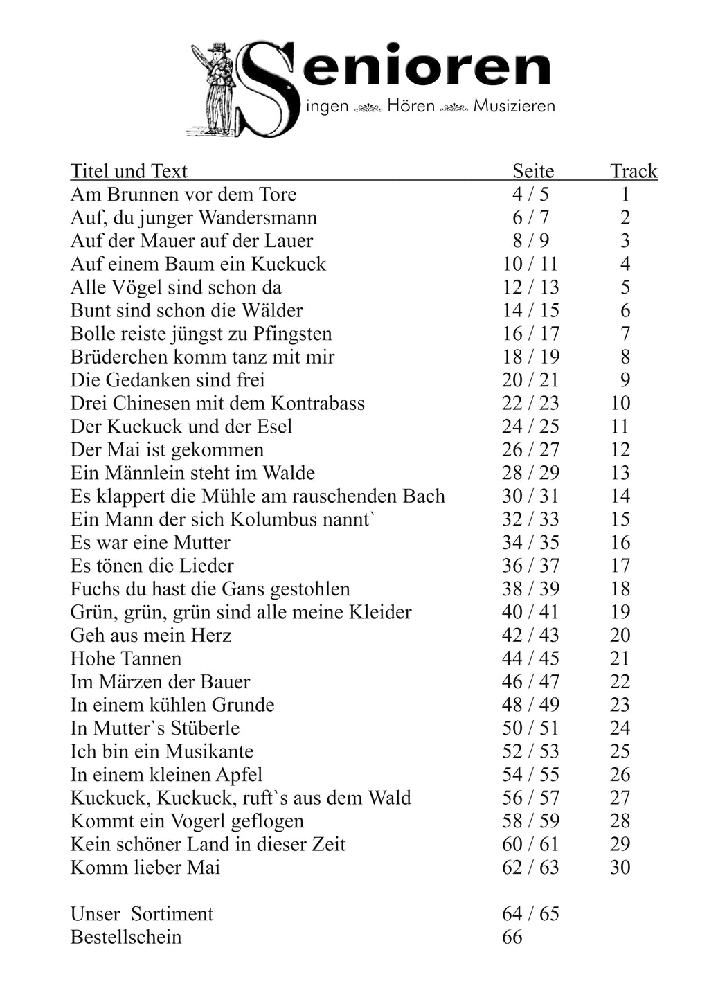 "Senioren - singen, hören, musizieren" verkörpert ein Liederbuch der besonderen Art. Es enthält 30 Volkslieder mit Noten im praktischen DIN A4 Format.