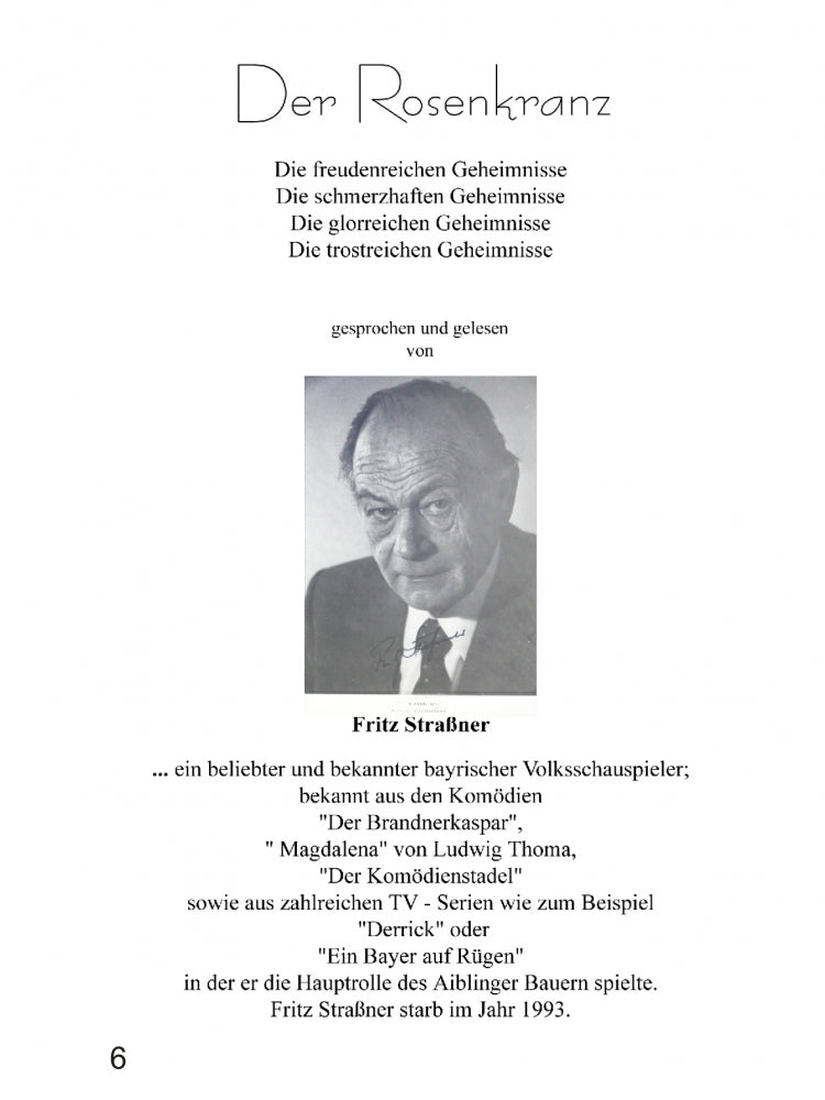 Gesprochen werden die Rosenkranzgebete von der sympathische Stimme von Fritz Straßner.