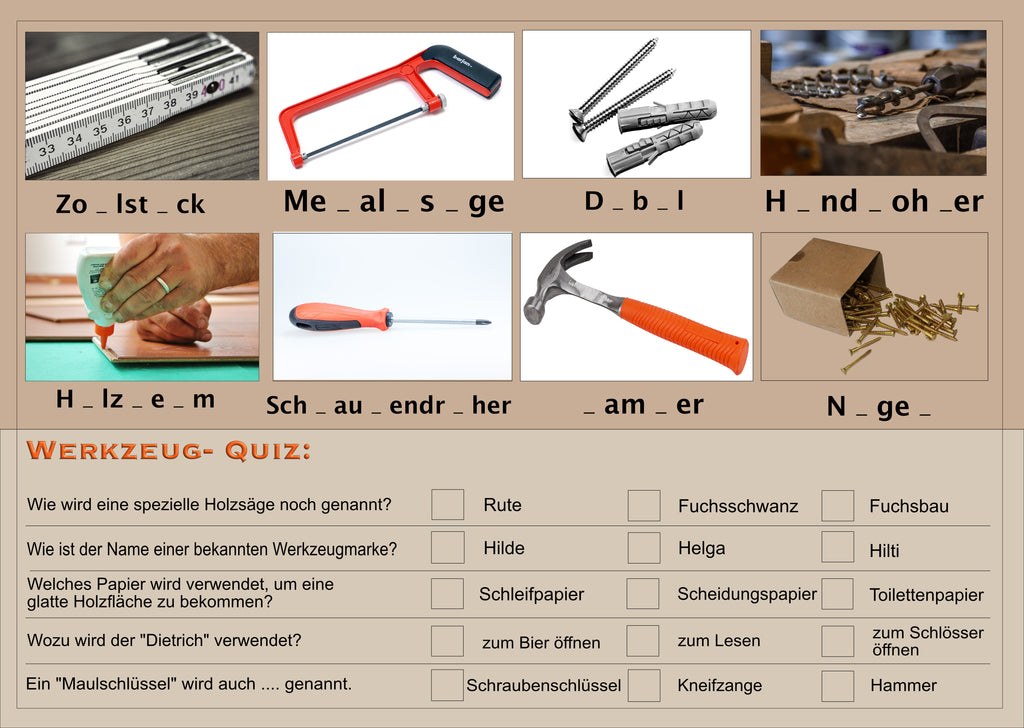 Der anschauliche XXL - Rätselblock - Werkzeug im DIN A3 Format (297mm x 420mm) verspricht einen gemeinsamen lustigen Gruppennachmittag.