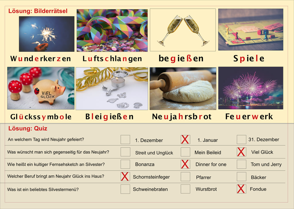 Die Lösungen befinden sich auf dem Deckblatt.